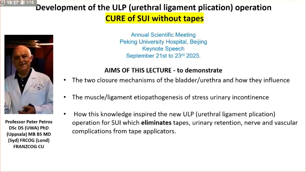 主会场/ULP(尿道韧带折叠术)手术的改良和随机对照试验数据-无需吊带治疗SUI