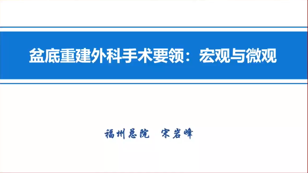 主会场/盆底重建外科手术要领宏观与微观